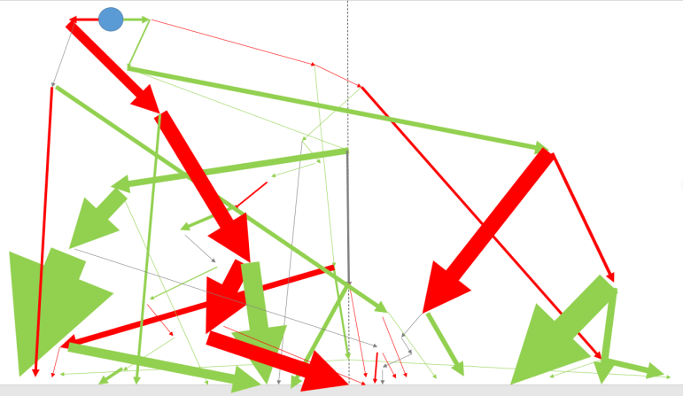 I pokud bychom měli možnost vidět do budoucnosti a vybrali si vždy tu nejlepší (nejtlustší zelenou) šipku, došli bychom v konečném výsledku velmi daleko od cíle – až úplně vlevo, nejdále ze všech šipek.