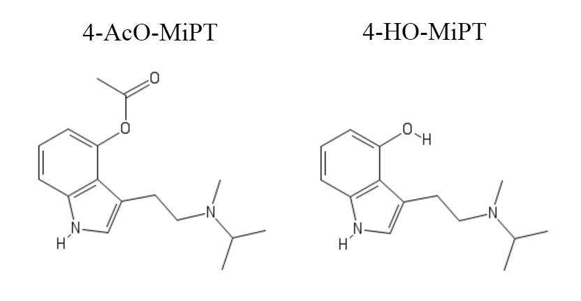 Jednou z nich je MiPT, u kterého se na dusíku usadil methyl a isopropyl. Jak jsme si ukazovali výše, DiPT, které má isopropyly dva, je mezi tryptaminy a psychedeliky obecně zvláštní, protože působí primárně na sluch, nikoliv zrak.