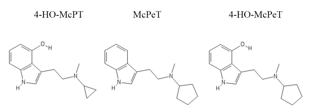Prozatím jsme opomněli zmínit asymetrické dusíkové substituce s cyklickými alkyly. Těch může teoreticky existovat obrovské množství, ale (alespoň prozatím) však byly připraveny pouze tři – 4-HO-McPT, McPeT a 4-HO-McPeT.