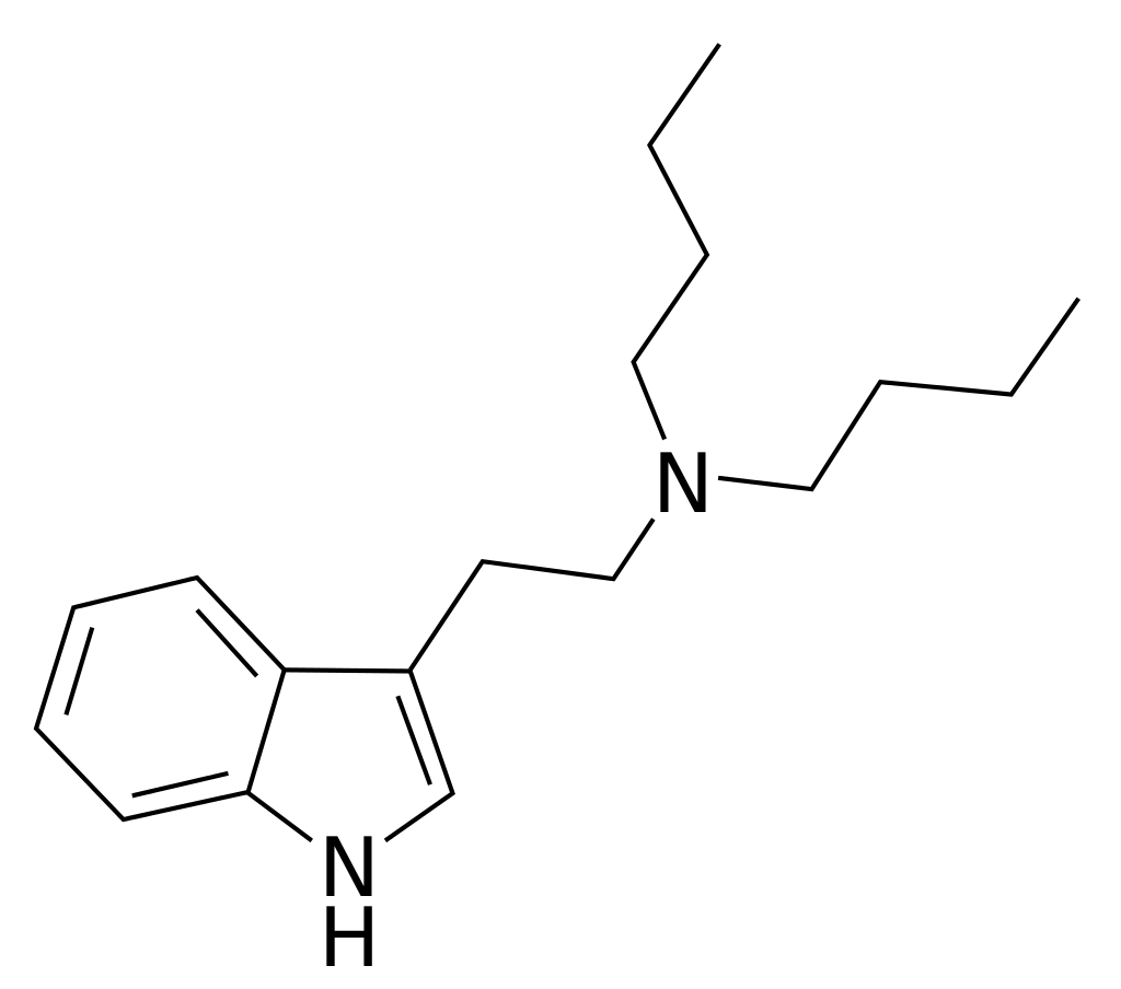 Tato informace neříká prakticky nic o povaze efektů DBT, ale poslouží nám jako dobrý příklad pro jedno z obecných pravidel tryptaminových substitucí: 5HT2A receptor, na který psychedelika působí, patrně nemá rád dlouhé řetězce. DPeT/DAT (dipentyltryptamin/diamyltryptamin, kde jsou butyly nahrazeny pentyly) sice nebylo nikdy vyrobeno, ale DHT (dihexyltryptamin) připraveno bylo a nepodařila se nalézt žádná aktivní dávka. Jak si budeme ukazovat později, toto pravidlo platí nejen pro substituce na dusíku, ale šířeji i pro ty prstencové (technický termín zní ‘aromatické‘) – příliš velké skupiny nejsou pro aktivitu dobré.