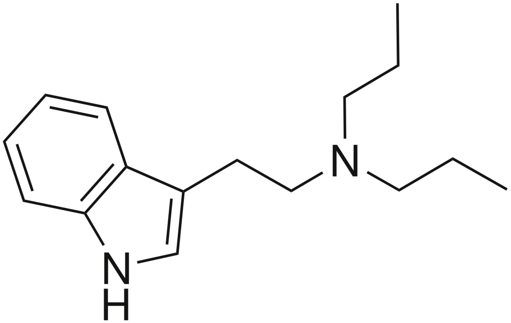 DPT je příkladem velmi jednoduché substituce s delšími alkyly. Na řetězcový dusík byly připojeny dvě základní, rovné propylové skupiny, zatímco prstenec zůstává holý.