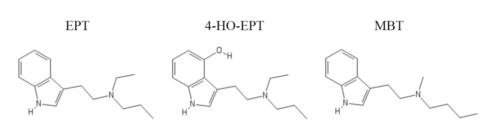 Pokud nahradíme methyl ethylem, dostaneme EPT neboli ethylpropyltryptamin. Byla připravena i jeho 4-hydroxy varianta (eprocin), ale obě tyto látky jsou extrémně vzácné a prakticky vůbec nic se o nich neví. To samé platí i pro MBT (methylbutyltryptamin).