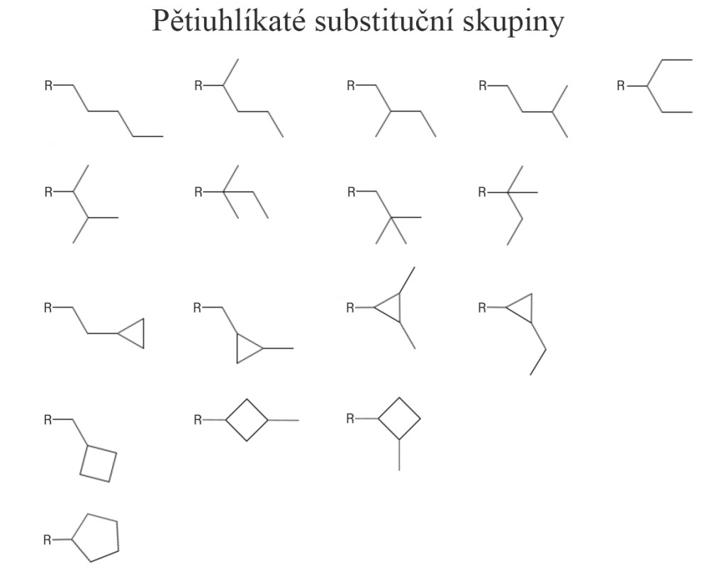 Samozřejmě, část z nich jsme už probrali minule (ty omezující se jen na methylové a ethylové substituce), ale naprostá většina nám zůstala na dnešek.