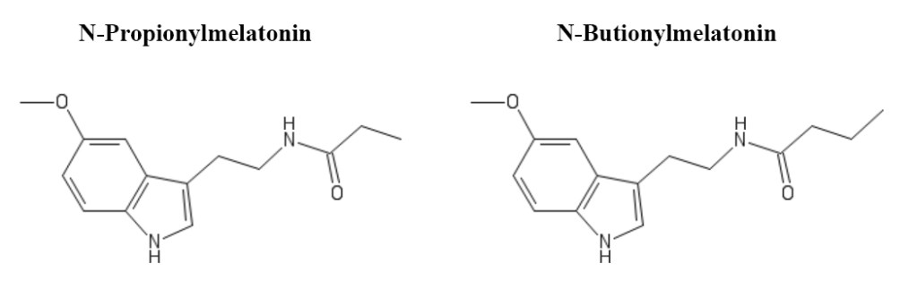 Pokud prodloužíme acylovou skupinu o jeden či dva uhlíky, získáme N-propionylmelatonin a N-butionylmelatonin. Mnoho informací o nich k dispozici není, avšak domnívám se, že lze předpokládat, že se chovají podobně jako jejich kratší příbuzný.