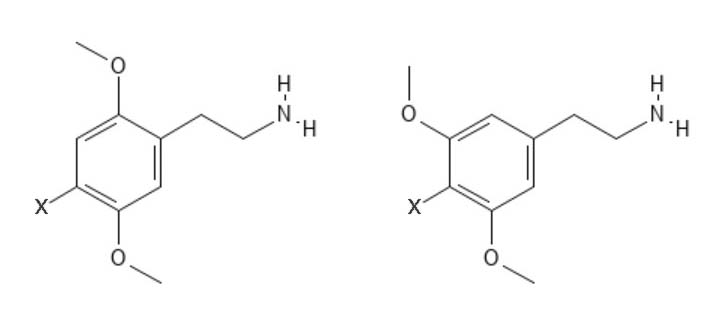 Jak víme z přechozích článků, takzvané psi analogy nejsou jedinou alternativou pro rozložení pozic methoxy skupin/kyslíků u fenylethylaminových psychedelik. Kromě nich existuje i meskalinové rozložení, kdy jsou dva kyslíky na pozicích 2 a 5 nahrazeny třemi kyslíky na pozicích 3, 4 a 5.