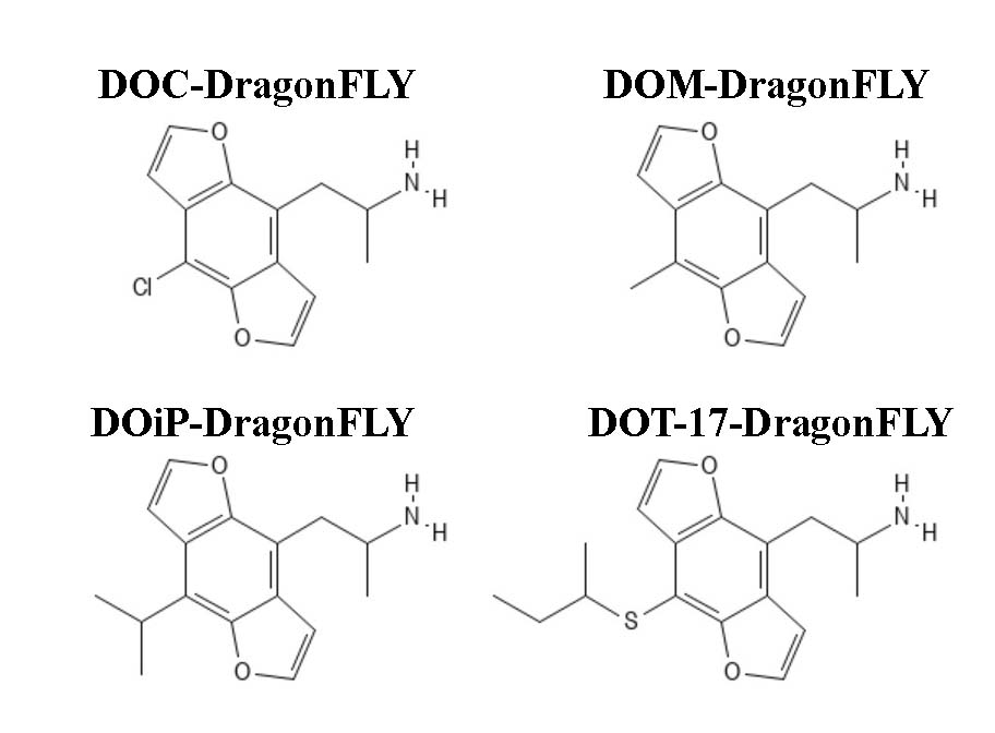 V roce 2002 bylo v rámci zkoumání vztahu mezi strukturou a aktivitou tohoto typu látek Jamesem Chambersem a Davidem Nicholsem vyrobeno11 Ψ-DOM-FLY. Podle všeho má dobrou afinitu, zvláště ve srovnání s původním Ψ-DOM. V souladu se zjištěními probíranými výše v tomto článku je na tom Ψ-DOM-DragonFLY ještě lépe.