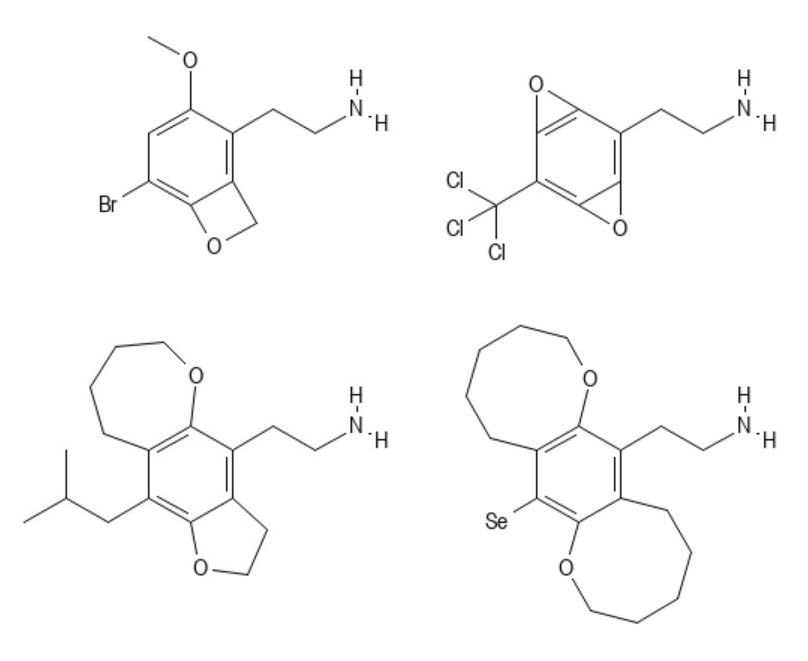 Z hlediska normálních substitucí je i to poměrně dobře prozkoumané, jak jsme si již ukazovali. ‘Křídla’ byla ovšem patrně vyzkoušena jen pro meskalin samotný.
